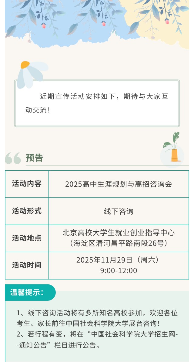 社科大2025年近期本科宣传预告(11月27日更新)