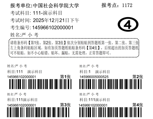中国社会科学院大学2026年硕士研究生招生自命题科目考试由考生自行粘贴答题纸条形码,请考生务必认真观看以下视频,仔细阅读粘贴说明。